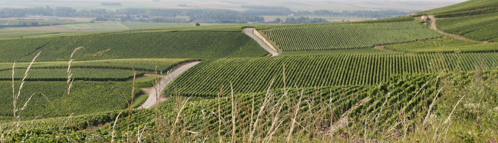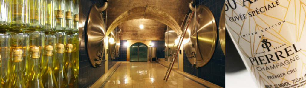 In de eerste plaats worden de druivensoorten Pinot Noir, Pinot Meunière en Chardonnay gebruikt bij de productie van alle Champagne, maar een kleine hoeveelheid Pinot Blanc, Pinot Gris en Petit Meslier worden ook gevinifieerd. Champagne Appellatiewetten laten alleen druiven toe die geteeld zijn volgens de regels van de appellatie in specifieke percelen en wijngaarden om te worden gebruikt bij de productie van Champagne.